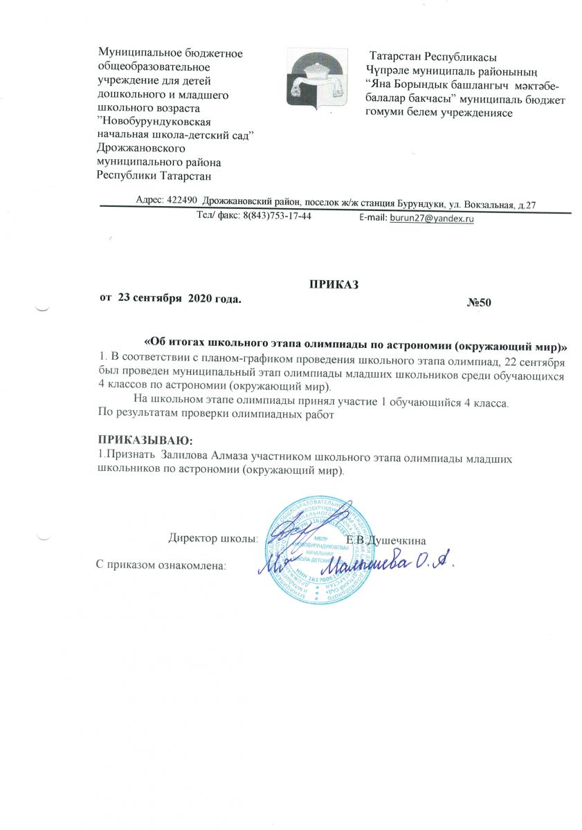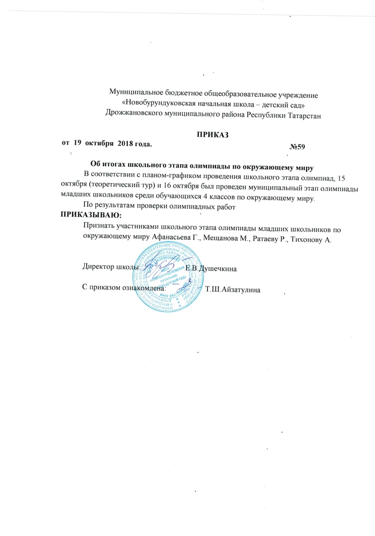 Приказ об итогах школьного этапа олимпиады по окружающему миру
