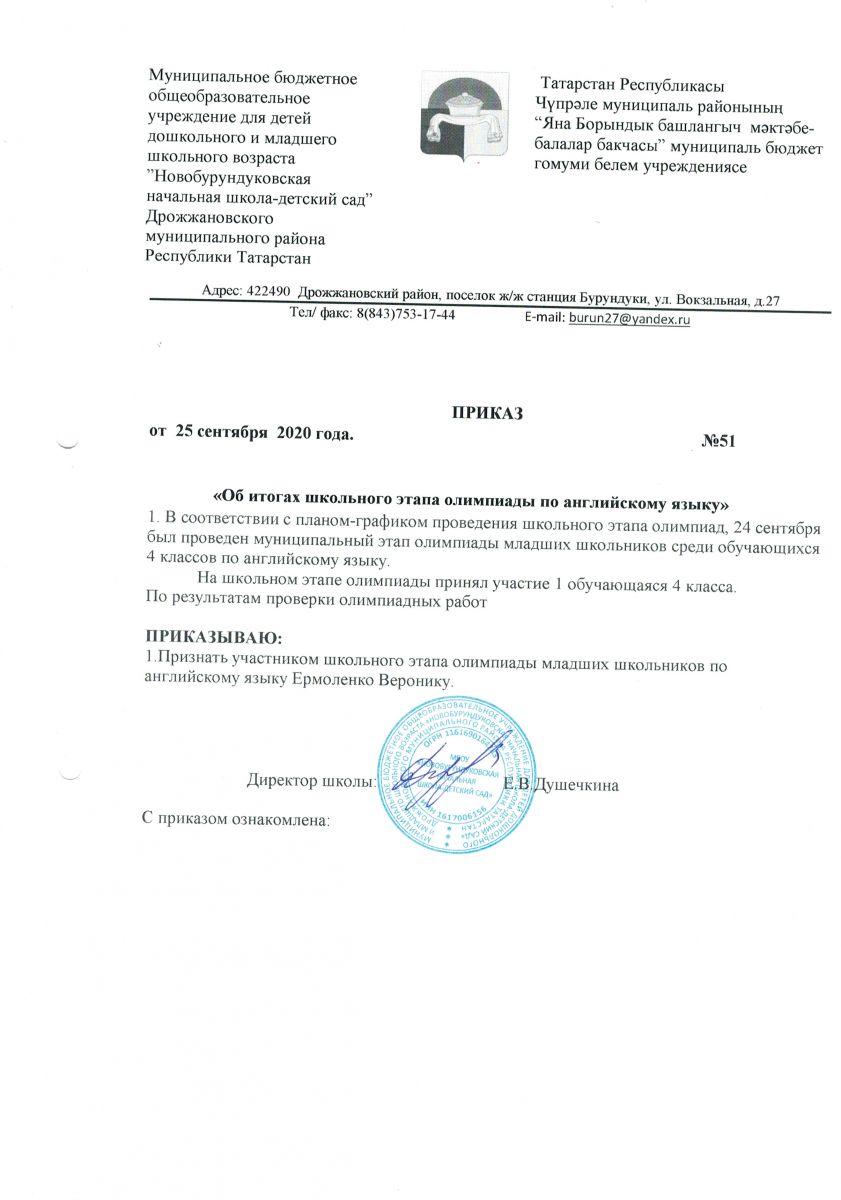 Приказ об итогах школьного этапа олимпиады по английскому языку