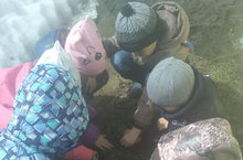 Снег стал темный, грязный, ноздреватый, зернистый, на солнце он тает. Часто можно увидеть осевший сугроб, из-под которого текут струйки воды – ручейки. В тени и холодных местах снега еще много, а на солнышке он уже растаял.