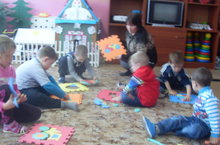 Учимся играя.Сегодня старшие дети показали младшим находить,собирать разные виды транспорта с пазлами.