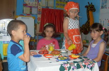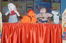 Сегодня мы с ребятами читали маленькие книжки, отгадывали загадки. Ребята с удовольствием рисовали на тему "По страницам любимых сказок". А больше всего наши дети любят играть в сказку. Ведь это очень интересно быть героем из сказки. Мы играли и показывали сказку "Курочка ряба".Ребята менялись местами, кто -то становился зрителем,а кто -то героем из сказки.
