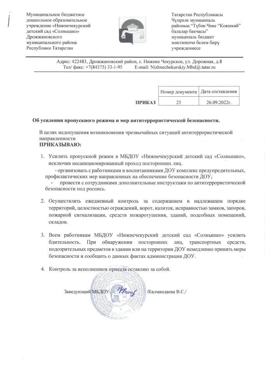 Приказ "Об усилении пропускного режима и мер антитеррористической безопасности"