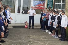 В соответствии с приказом по школе о проведении тренировки по эвакуации при пожаре 2 сентября в школе была проведена тренировка в ходе которой учащиеся под руководством учителей организованно покинули здание школы на безопасное расстояние.