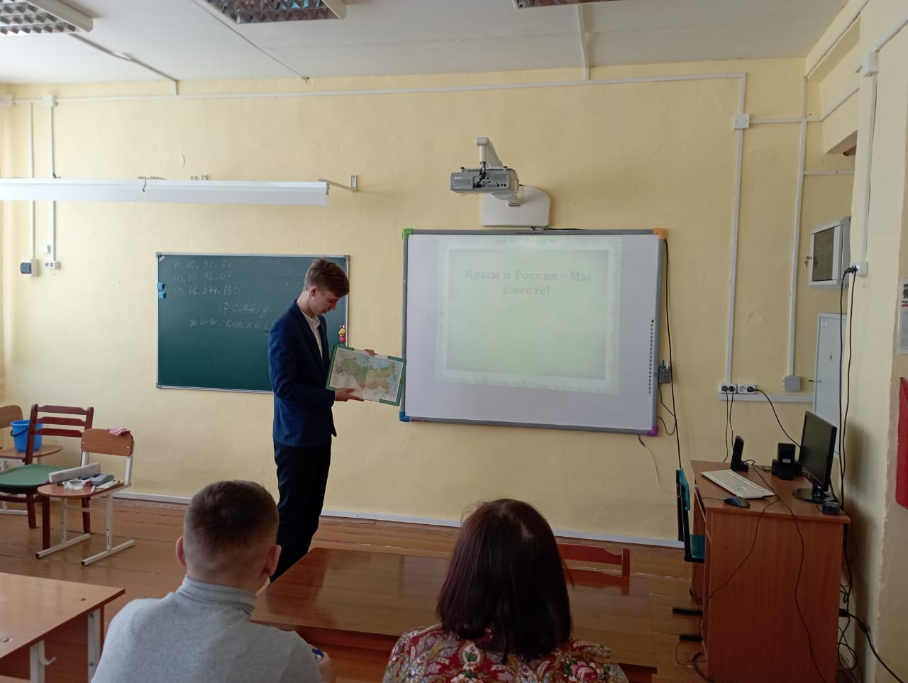 С учащимися 1-11 классов проведены мероприятия, посвященные этой знаменательной дате, такие , как "Крым и Россия --вместе", "Герой нашего времени", Крым и Россия --навсегда", проведены открытые урокив старших классах.