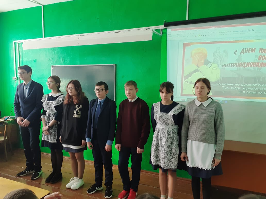Опубликовано: 15.02.2023Сегодня в школе прошли мероприятия , посвященные 34-годовщине вывода войск из Афганистана. Она началась со встречи участников автопробега и возложения венка . Далее учащиеся провели урок памяти, посвщенная воинам-афганцам.