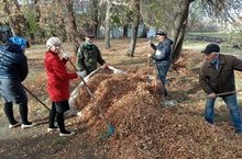 В субботу силами коллектива во главе директора школы Абдрахманова Ш.М. была очищена территория школы от сухих листьев.