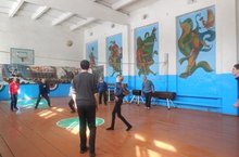 Сегодня в школе состоялся волейбольный турнир между учениками 9 класса и сборной командой учителей во главе Шумилова И.В.