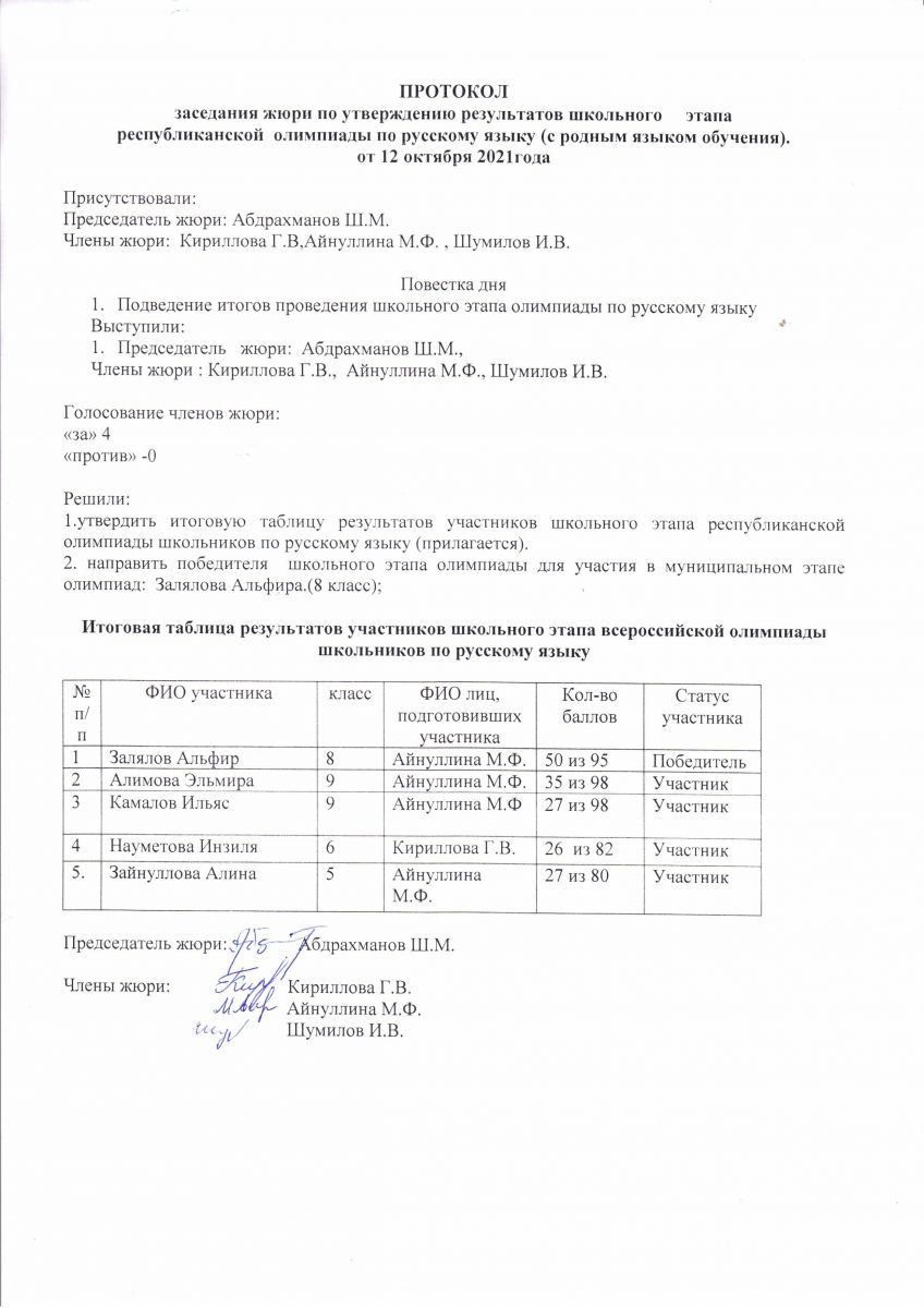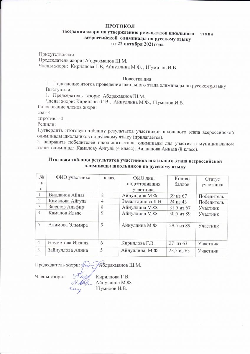 протокол всероссийской олимпиады по русскому языку