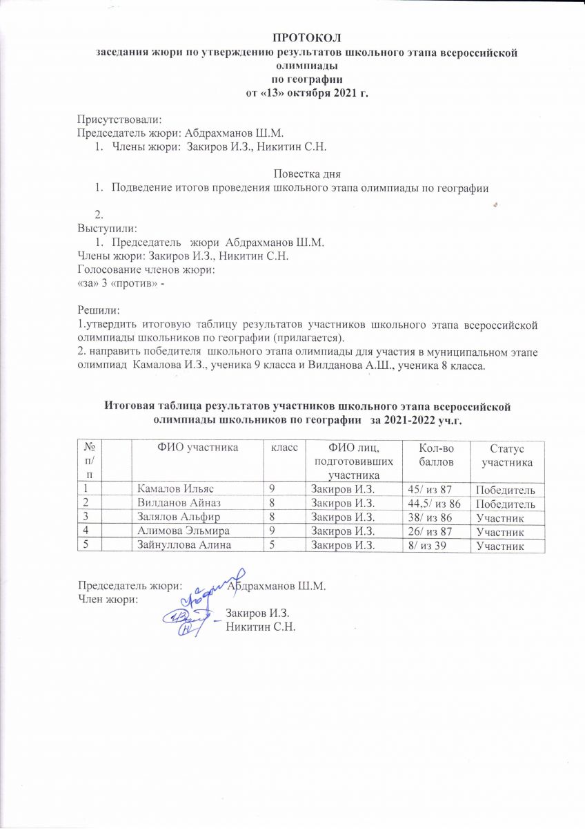 Протокол олимпиады по географии