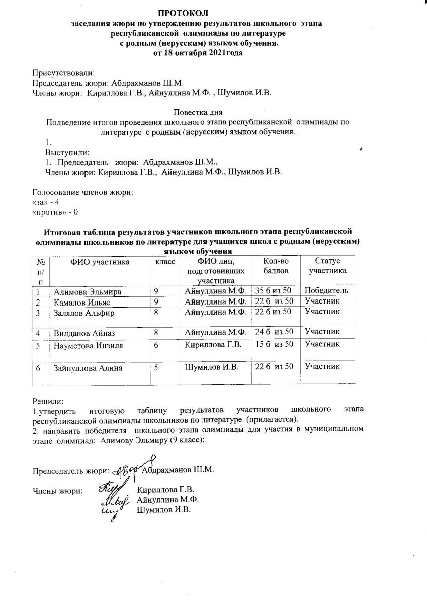 протокол олимпиады по литературе с родным (нерусским) языком обучения