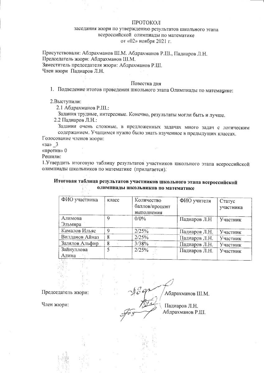 Протокол олимпиады по русскому языку
