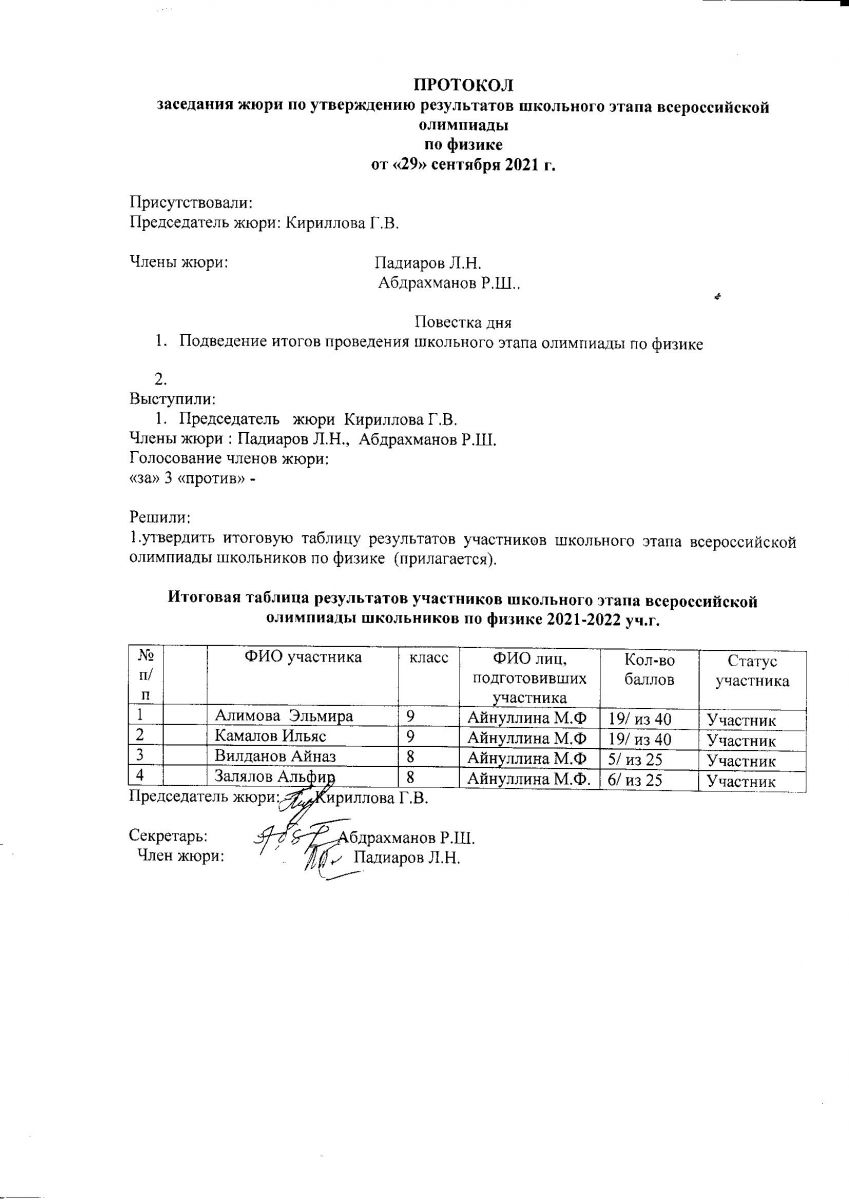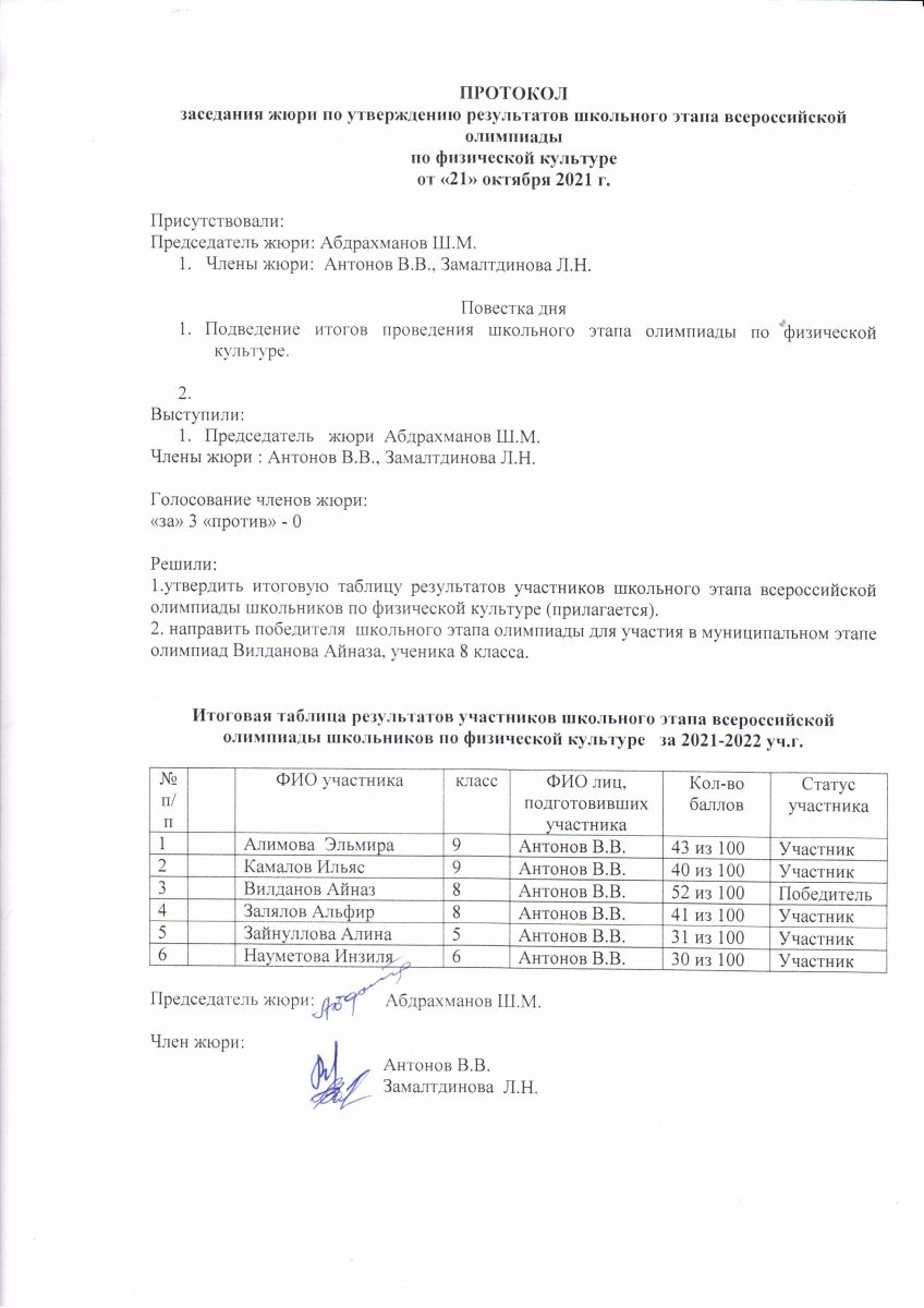 протокол олимпиады по физической культуре