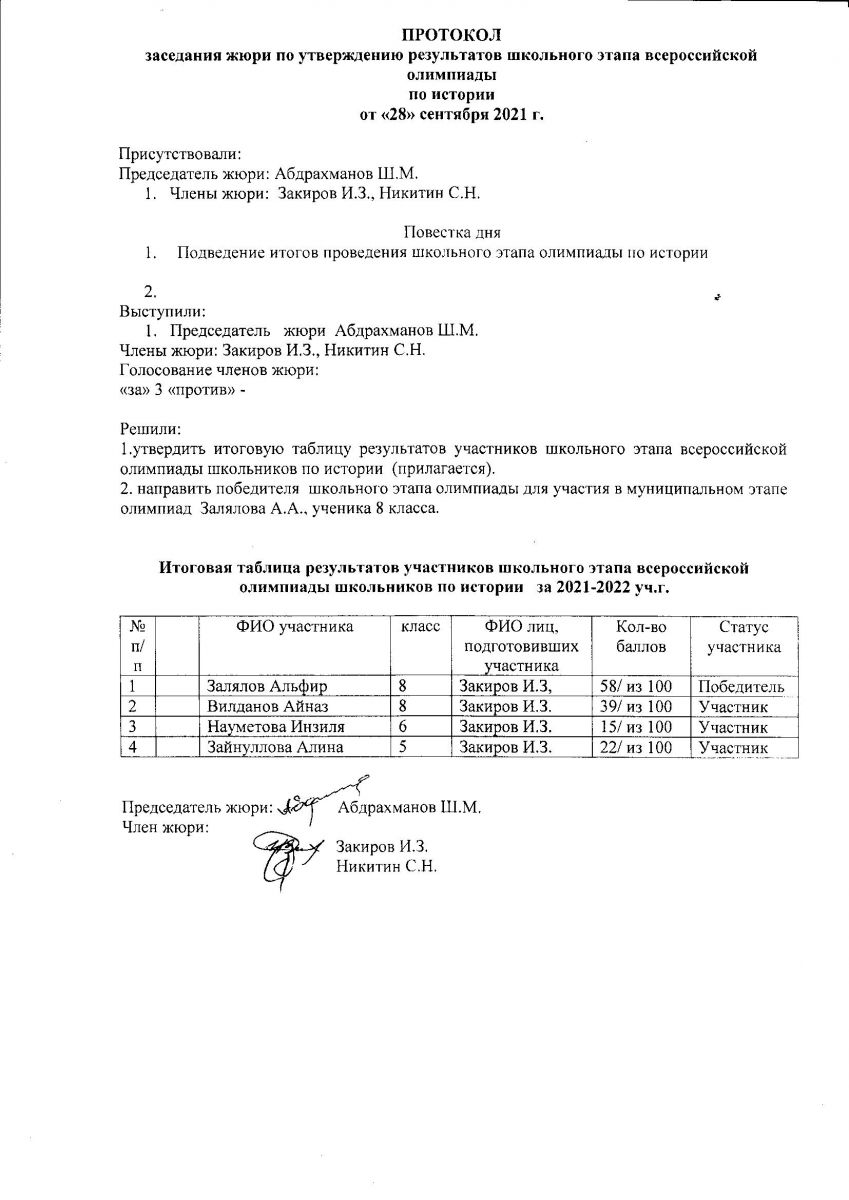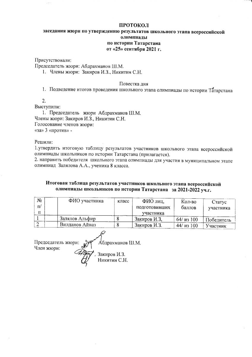 Протокол олимпиады по истории Татарстана