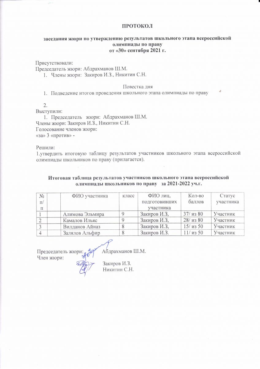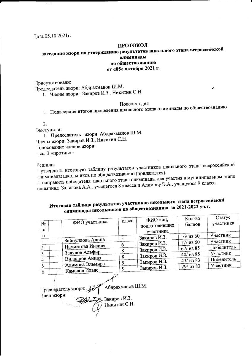 Протокол олипиады по обществознанию