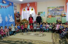 18 декабря в нашем детском саду прошла встреча с ведущим специалистом муниципальной службы по линии пропаганды БДД А.С.Яковлевой совместно с сотрудниками ГИБДД.. Они провели беседу с воспитанниками по теме "БДД в зимнее время года".