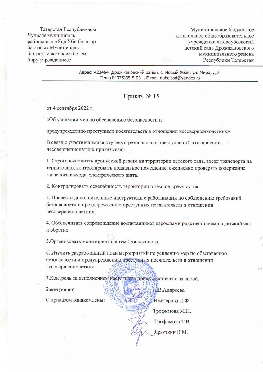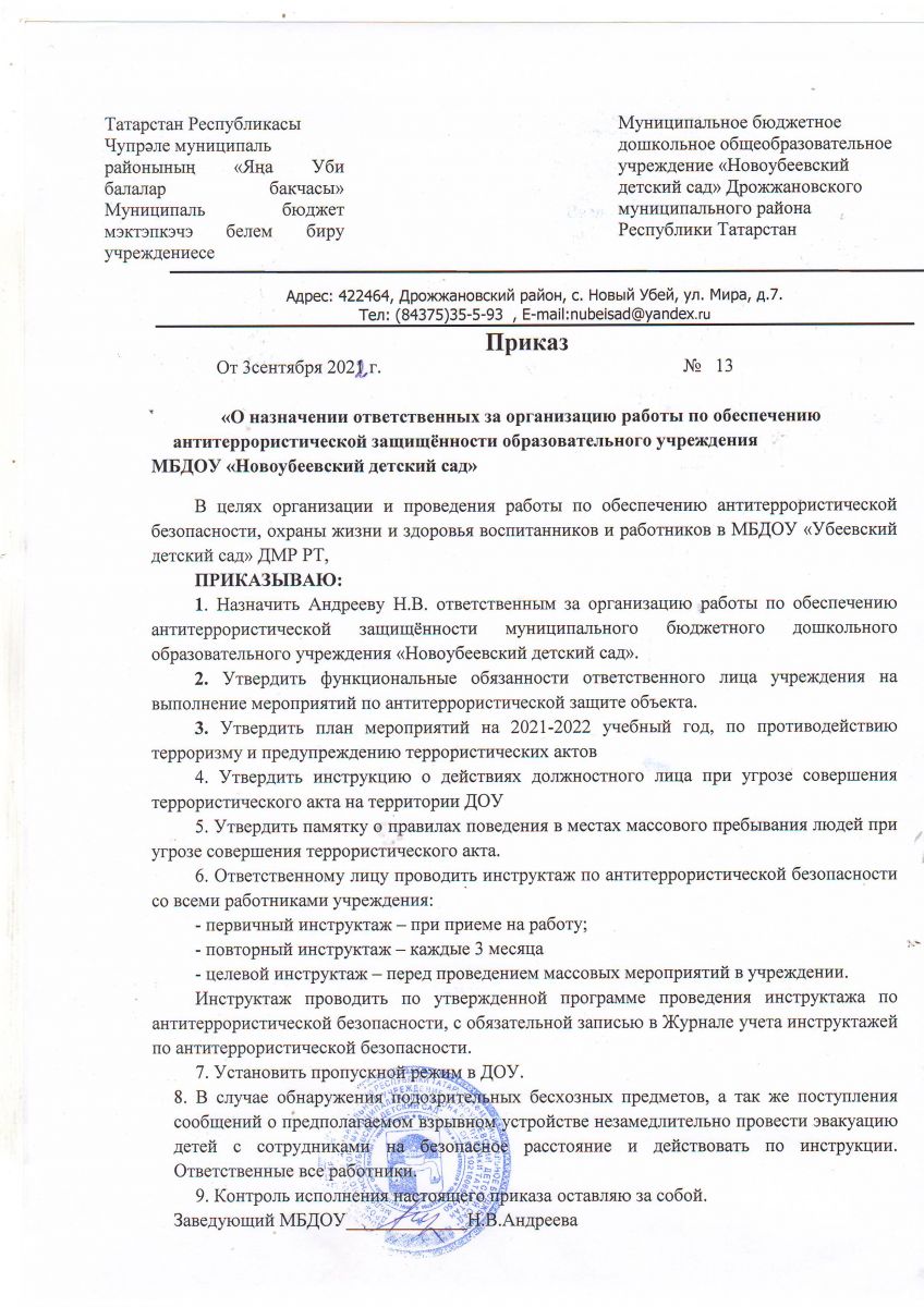Приказ о назначении ответственного лица за антитеррористическую безопасность