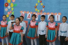 Сегодня в школе состоялся ежегодный праздничый концерт к Международному женскому дню. В поздравлении мам участвовали все учащиеся школы.