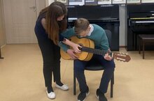 Преподаватель музыкального отделения Захарова Ксения Петровна провела мастер - класс по обучению игре на гитаре для начинающих в рамках реализации проекта "Пушкинская карта".