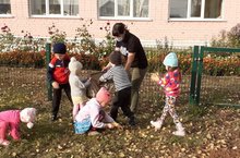 Труд в природе, часто используется, как практический метод ознакомления дошкольников с природой. Огромное количество опавших листьев убрали с участка для прогулок воспитатель с воспитанниками.