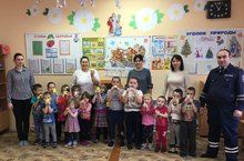 В нашем детском саду состоялась встреча с госинспектором ДПС Долговым А.Н. и ведущим специалистом по линии пропаганды БДД Яковлевой А.С. Они провели профилактическую беседу о Правилах дорожного движения. Цель беседы – профилактика детского дорожно-транспортного травматизма. Инспектор по пропаганде безопасности дорожного движения рассказал воспитанникам о том, как правильно вести себя на проезжей части и объяснил правила езды на велосипеде