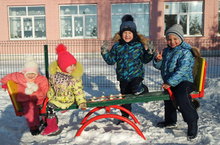 А зима особенное время года. Детишки любят поиграть со снегом и охотно чистят своими лопатками скамеечки, дорожки. Даже самые маленькие ребятишки младшей группы расчищают свои скамейки, помогают взрослым убирать снежок с дорожек, в конце прогулки собирают ведёрки и лопаточки в корзину, а потом радуются результату своего труда.
