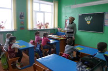 Сегодня мы пошли в школу. В этом классе будут учиться наши будущие первоклассники. С улыбкой и нежностью нас встретила учительница. Она для нас приготовила много интересного, нового. Это красочные презентации, раскраски, книжки.