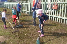 Сегодня у нас по всему селу обьявлен экологический субботник. Детский сад в полном составе, в том числе и наш маленький народ, трудился на территории детского сада.