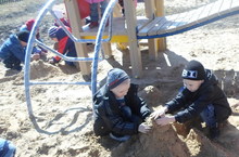 Сегодня теплая , солнечная погода. Пользуясь этим наши дети строили волшебные замки из песка. Песок рождает множество ощущений: он шершавый и послушный, текучий и пересыпающийся. Возня в песке позволяет снять лишнее напряжение, обогощает тактильный опыт. Песок массирует ручки и ножки малыша.