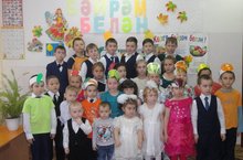 Башлангыч сыйныф укучылары көз бәйрәмен бакча балалары белән берлектә үткәрделәр. Үзләренен чыгышлары белән ял иттерделәр. Көз булып киенгән гүзәл кыз кәнфит, прәникләр эләште. Бәйрәм күңелле үтте.