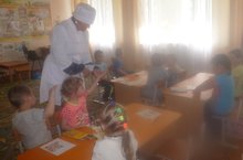 Медицина хезмәткәрләре - Хайруллина Г.А. һәм Тухфатуллина А.Ф. балалар бакчасындагы балаларны әледән – әле тикшереп күзәтеп торалар. Чисталыкны саклау, юыну кагыйдәләрен, җиләк- җимешләрне юып ашау кирәклеген бәйнә-бәйнә аңлаталар. Тиз арада ярдәм итәргә ашкынып торалар. Без аларга бик рәхмәтле.
