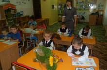 Яңа уку елын быел 10 бала белән башлап җибәрдек. Группада төрле яштәге балалар булса да дәресләрне тиешенчә алып барырга торышабыз. Балаларның барысына да эш бүленгән, бер бала да читтә калмый.