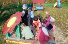 Обычно, выйдя на площадку, дети прежде всего собираются у песочных ящиков.Спасибо родителям, что обеспечивают каждый год песком.