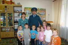 Встреча с инспектором пожарной безопасности. Марс Харисович объяснил детям, что с огнем играть опасно, что маленькие дети не должны брать в руки спички, включать электроприборы и газовые плиты. Иначе может случится пожар. Заострил внимание детей на том, что каждый должен знать номер телефона пожарной охраны – 01, тогда диспетчер получит вызов и пожарная машина примчится на помощь и выручит из беды. -