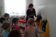 Сегодня в нашем детском саду мы провели праздник урожая. В гости пришла девушка осени "Сюмбеля".Она принесла много гостинцев. А дети ей рассказали стихотворения, спели песни.