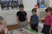В нашем детском саду воспитателями ведётся системная работа по обучению детей правилам дорожного движения. Для этого созданы все условия: имеется кабинет ПДД, оборудованный методическими пособиями и оборудованием. Малыши не только активно впитывают новую информацию и навыки, но и старательно применяют её на практике.