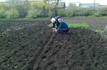 Весь наш коллетив дружно работал в огороде детского сада. Посадили картошку,лук, посеяли морковь, свёклу. Обрезали засохшие и заражённые ветки у яблонь, для улучшения доступа солнечного света, побелили.