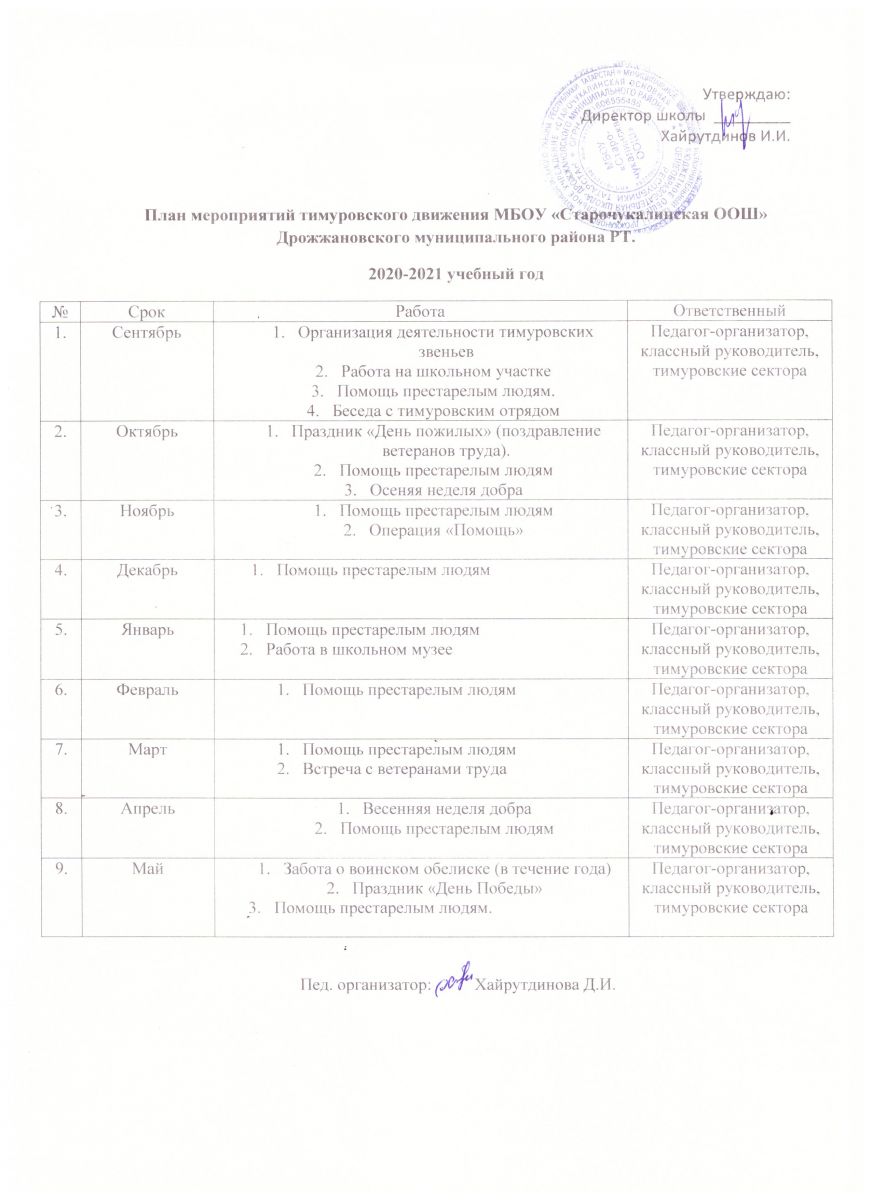 План мероприятий тимуровского движения