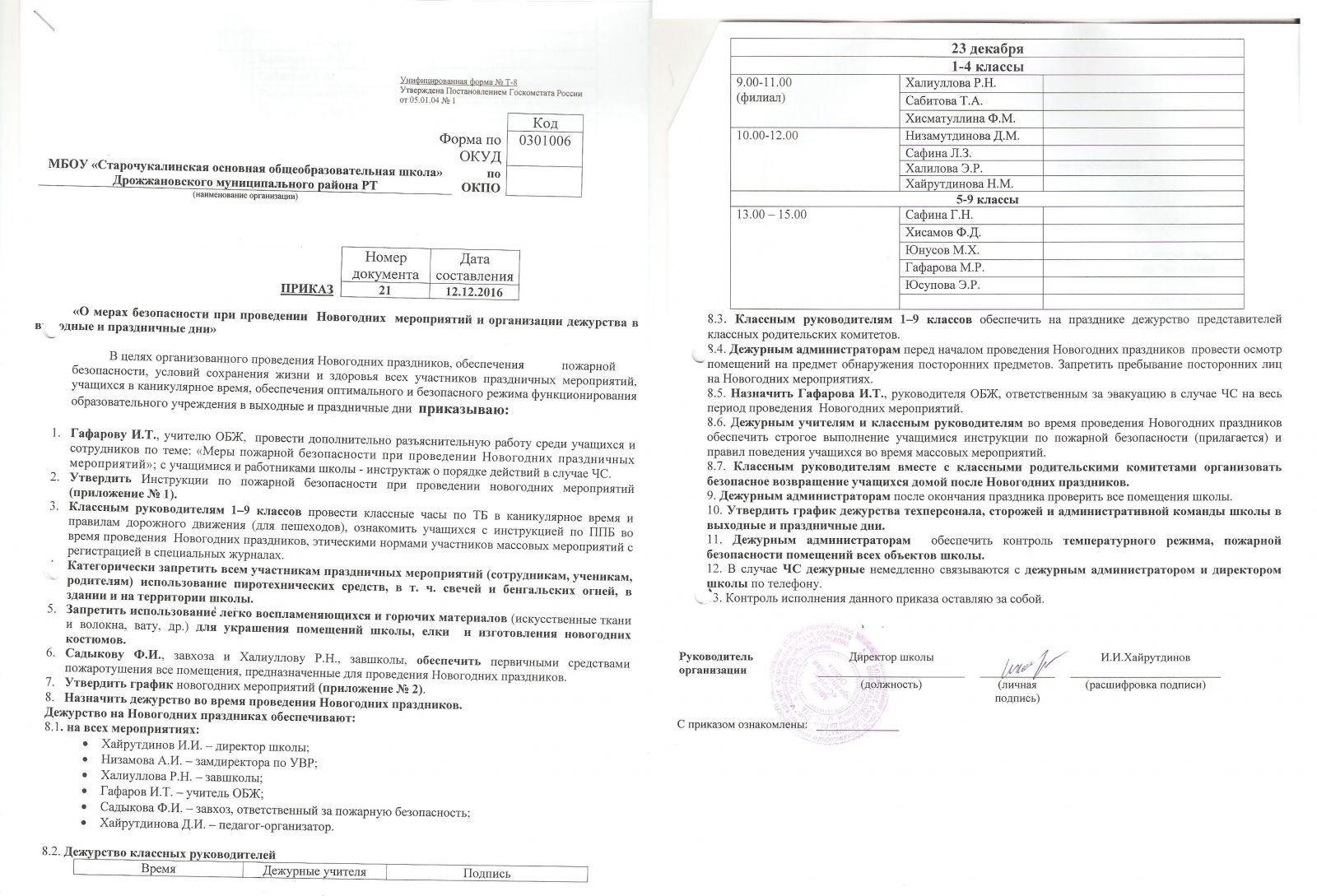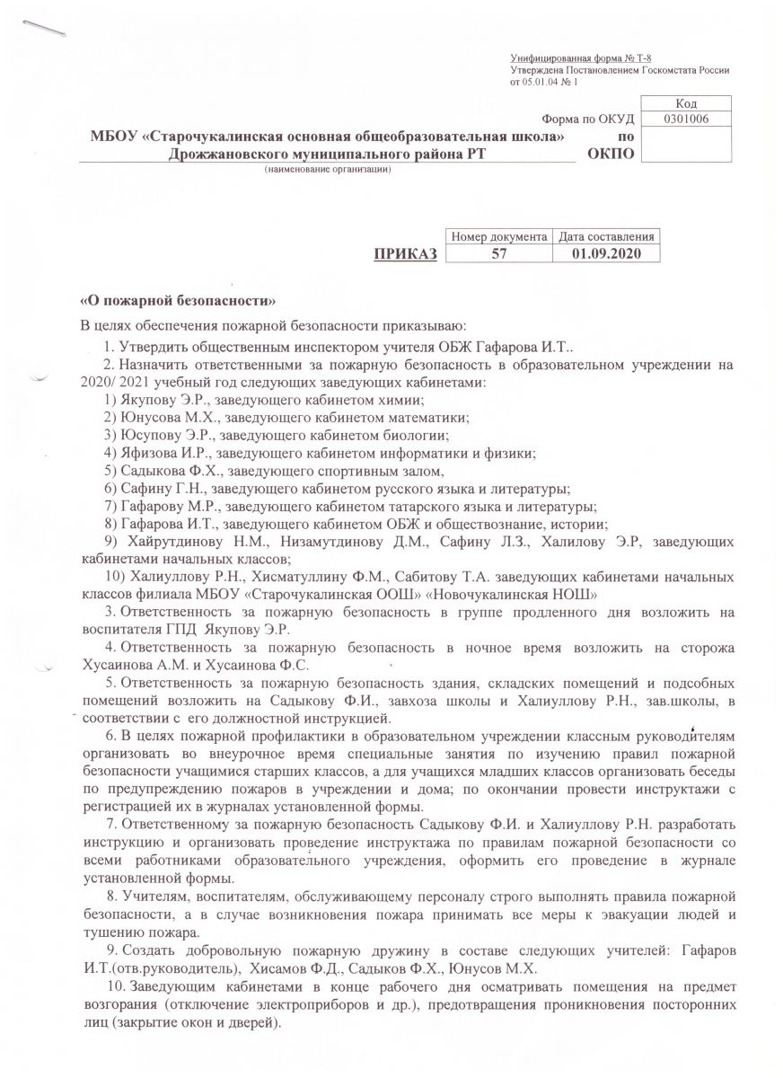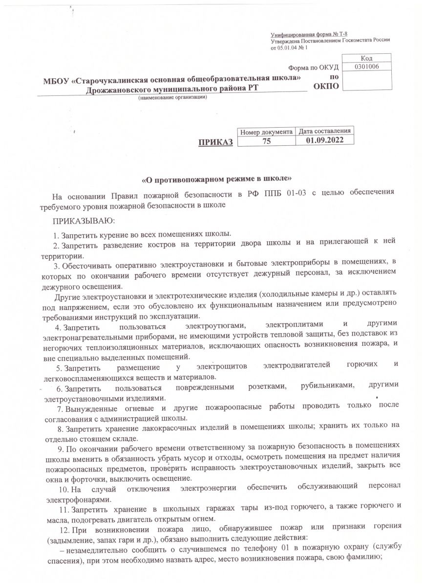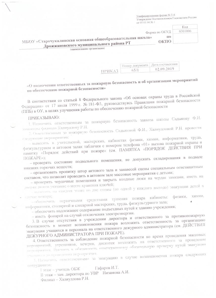 Приказ о пожарной безопасности