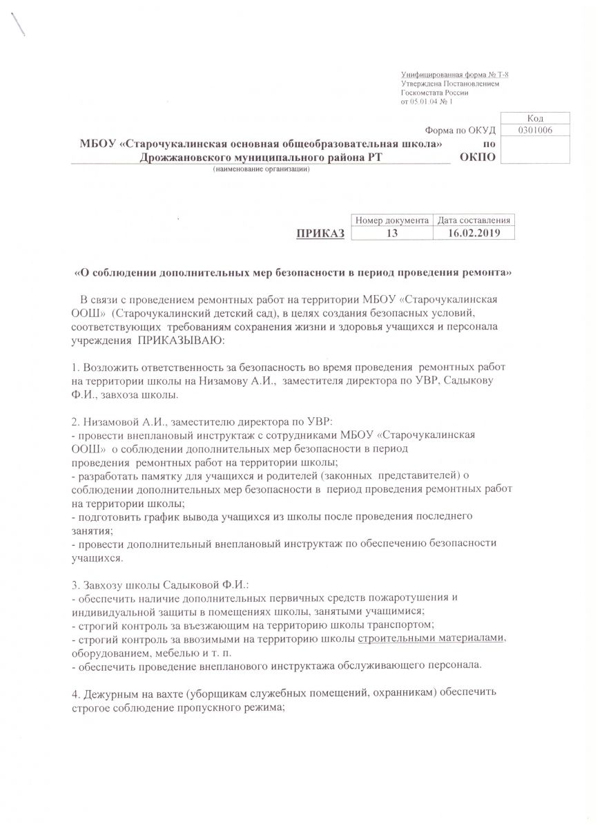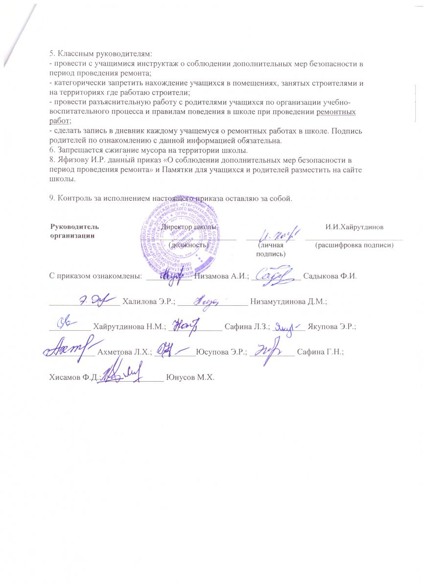 Приказ о соблюдении дополнительных мер безопасности при ремонте 2