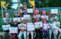 В нашем детском саду традиционно накануне празднования Дня России проходят мероприятия. Так, с воспитанниками старшей группы организовали беседу на тему «Наша Родина – Россия», в ходе которой дети вспомнили понятия «Родина», «флаг», «герб», «гимн» сделали пальчиковую гимнастику "Мы жители России", почитали стихи, спели песню. Затем внимательно рассмотрели символы России и выполнили рисунки на бумаге и окне «Россия – Родина моя!». Мероприятие прошло очень интересно, познавательно и продуктивно!