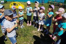 Дети получили массу положительных эмоций и зарядились хорошим настроением на целый день. Ребята сказали, что день получился весёлый, запоминающийся, а завершился он салютом из мыльных пузырей.