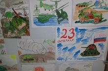 В ходе о проведении месячника гражданско – патриотического воспитания, посвященного Дню Защитника Отечества, был проведен конкурс рисунков на военную тему. Дети на своих рисунках показали знания военной техники, любовь к Российской Армии и своему Отечеству. И они с огромным удовольствием участвовали в мероприятии.