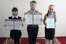 Учащиеся 3 класса приняли участие во всероссийской конкурс - игре по русскому языку "Журавлик". Они награждены дипломами I, II, III степени.