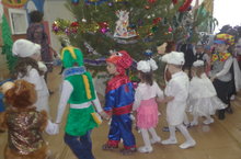 Сегодня в нашей дошкольной группе прошёл утренник, посвященный новогодним праздникам. К детям пришли в гости сказочные персонажи. Для Деда Мороза и Снегурочки дети исполнили новогодние песни,танцы, рассказали стихи.