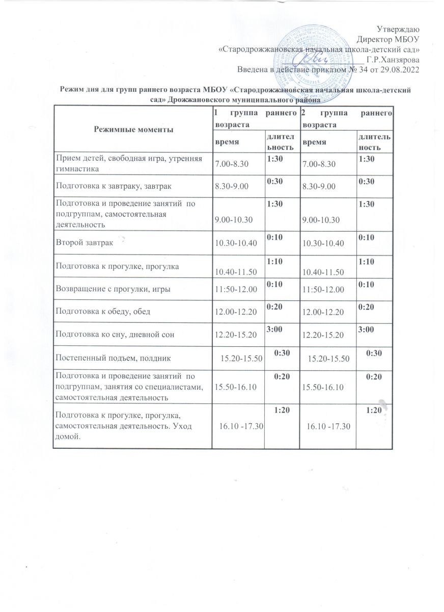 Режим дня для групп раннего возраста на 2022-23 уч.год