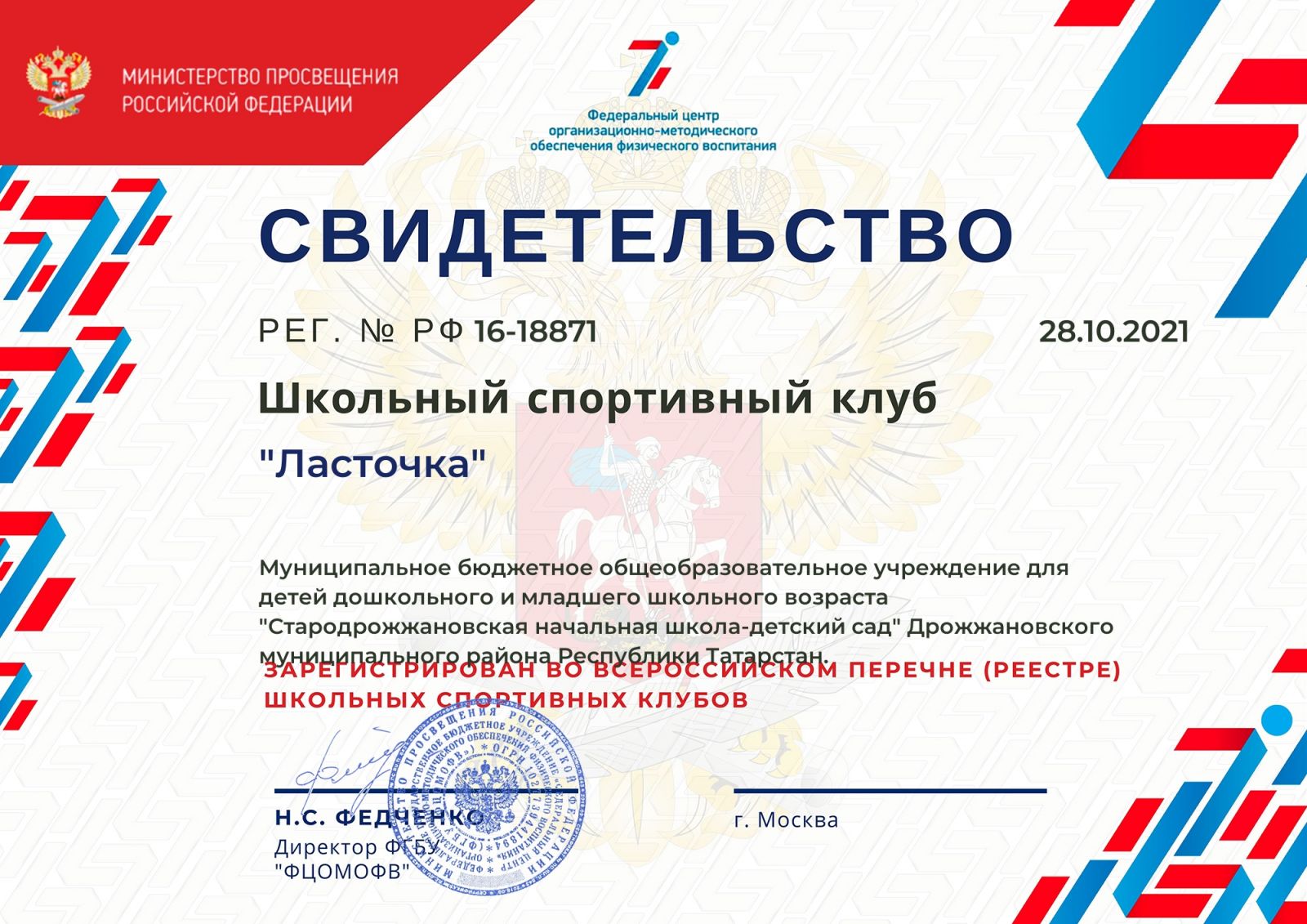 Свидетельство ШСК