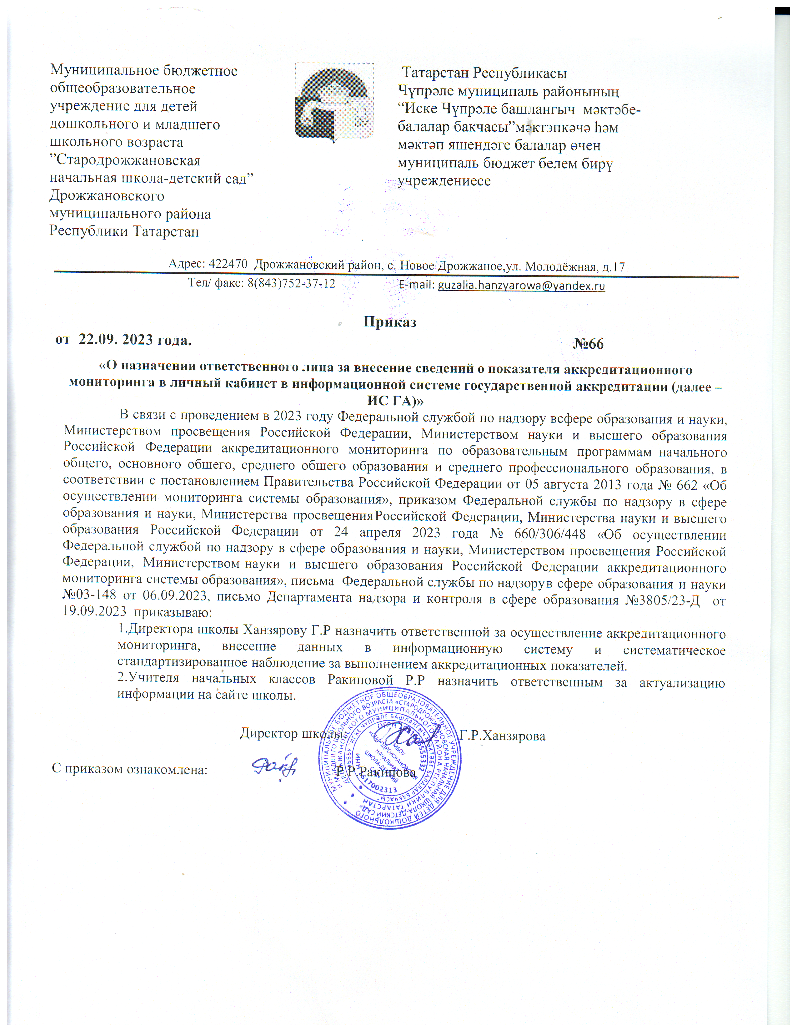 МБОУ для детей дошкольного и младшего школьного возраста «Стародрожжановская начальная школа-детский сад» Дрожжановского муниципального района РТ