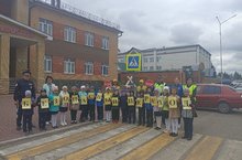 В рамках акции «Безопасный переход» участникам вручили светоотражающие элементы. -