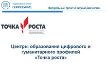 Центр образования цифрового и гуманитарного профилей «Точка роста» открыт в рамках федерального проекта «Современная школа» национального проекта «Образование».