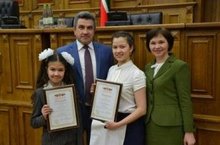 Сегодня в Государственном Совете состоялась торжественная церемония награждения победителей республиканских конкурсов детских рисунков, сочинений и эссе, состоявшихся в рамках «Парламентского урока – 2017». Кроме того, были отмечены победители онлайн-тестирования, посвященного 25-летию принятия Конституции Республики Татарстан, и юные герои. Лучшие из лучших были награждены дипломами и ценными подарками. В качестве победителей в торжестве приняли участие и учащиеся нашей школы - Маликова Алия, ученица 9А класса, и Ахметова Эльвина, ученица 5Б класса.
